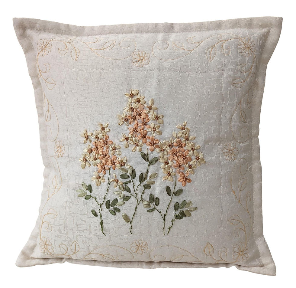 Vintage Floral Cushion - Ribbon Embroidery Ditsy Refurbished 41 x 41cm