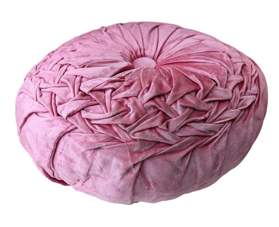 Vintage Round Velvet Cushion - Pink Velvet Tufted Retro 70s Refurbished 41cm